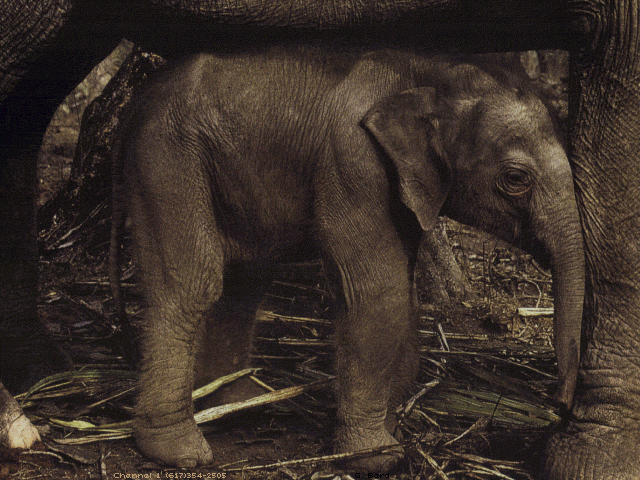 | BELEPHNT.GIF | 07-16-1992 | 136k | Baby elephant huddling underneath its mommy. |