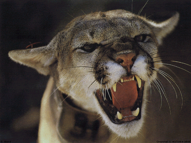 | MTNLION2.GIF | 07-17-1992 | 127k | Face of a young snarling mountain lion. |