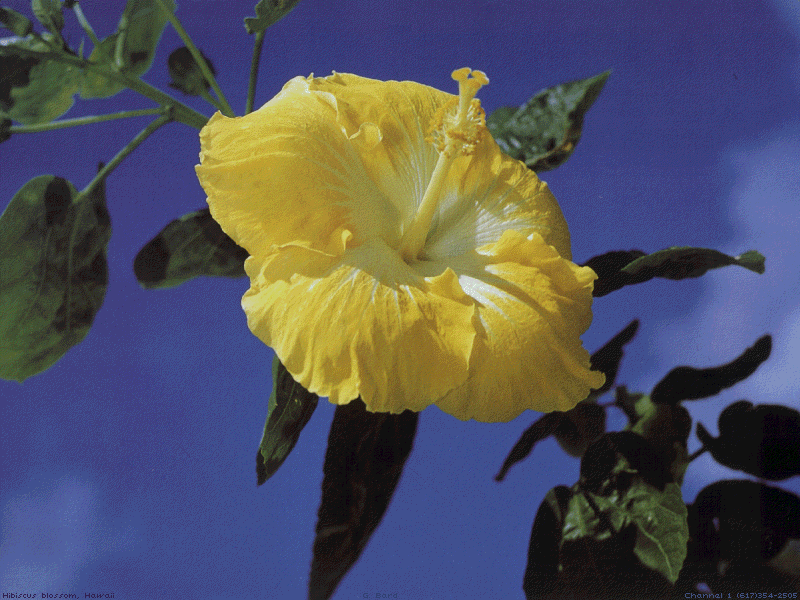 | HIBISCUS.GIF | 01-22-1993 | 208k | Closeup of a hibiscus blossom, a yellow |