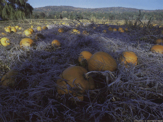 | VT13.GIF | 04-30-1992 | 192k | Frost-covered pumpkin patch in Vermont. |