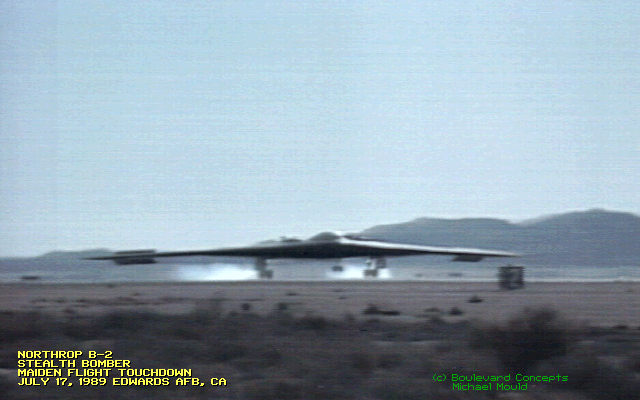 | B2TOUCH.GIF | 06-20-1991 | 126k | B-2 Stealth Bomber touching down after its |