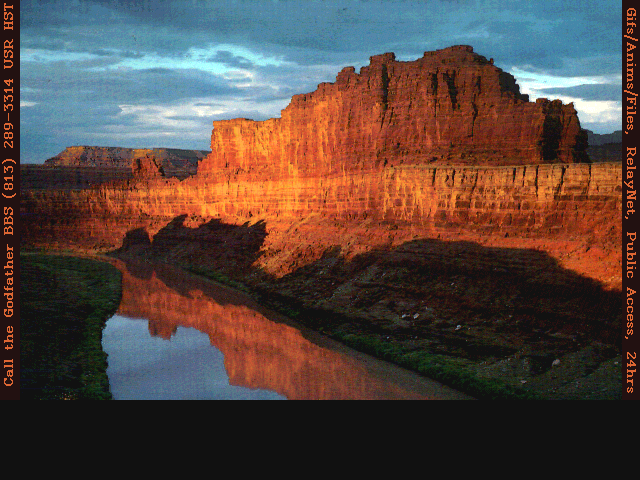 | UTAHSCEN.GIF | 10-14-1991 | 137k | Scenic view from Utah 640x480x256 |