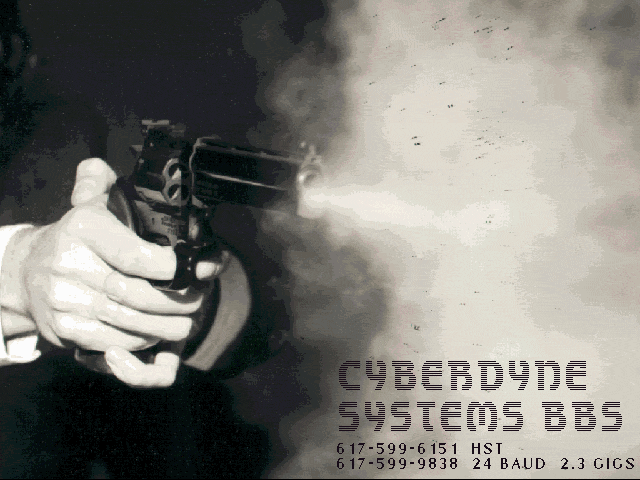 | CYB_GUN.GIF | 05-11-1993 | 56k | Excellent shot of a 357 Magnum being fired! |